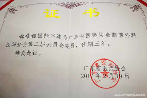 我院大外科林唯栋主任连任广东省医师协会胰腺外科医师分会第二届委员会委员,标志着我院普外科的发展得到广东省医师协会胰腺外科专业委员会的认可。