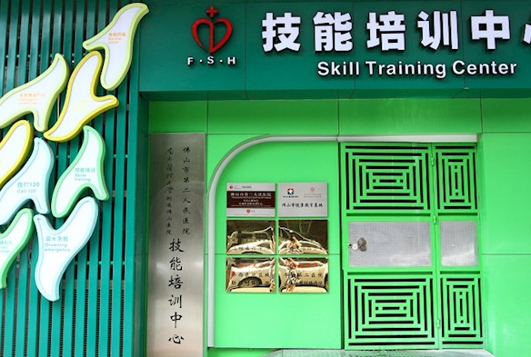 为全面落实“科技强院,科教兴院”战略,2013年我院在佛山市率先成立了技能培训中心,夯实临床技能的基础,体现“以人为本”的管理理念,促使医院在技能培训系统化、规范化方面与国际接轨。 佛山市第二人民医院技能培训中心,位于佛山市禅城区卫国路80号星河名居2楼,占地面积500多平方米,下设:临床技能培训室、护理技能培训室、腔镜及白内障超声乳化手术模拟培训室、远程医疗中心、资料室、办公室等,是我市首家集培训、科普的医疗临床技能和急救技能培训机构。2014年6月,正式挂牌成立“佛山市第二人民医院美国心脏协会心血管急救…