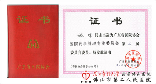 本届委员会在全省共选出89名委员,大部分委员集中在广州地区,其中佛山市直医院仅有2名委员入选。我院药学人员的首次入选,表明了我院药学工作和成绩得到了省一级的认可,也使得我院药学管理水平能够紧跟省内先进地区,对提高我院药学人员的地位和专业技术水平有促进作用,为迈向学术型,创新型“三甲”医院药学部门贡献力量。