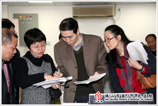 李蜀光院长、邱志斌纪委书记、刘泽媚院长助理和医务科范文奎科长接待了五位专家并听取了专家组的反馈报告。专家组成员听取了性病实验室的工作汇报后,分成两组到实验室现场考察检验设备配置、运转情况和检验项目的开展情况,查看了有关管理文件和资料等,并进行现场理论考试和实验考核。