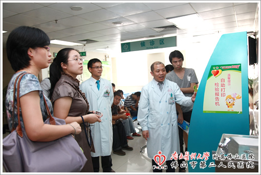 检验科周少雄主任向评审组介绍我院的自助检验查询机