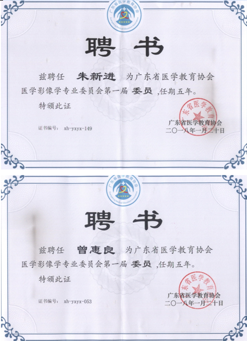 朱新进、曾惠良主任当选为广东省医学教育协会医学影像专业委员会第一届委员