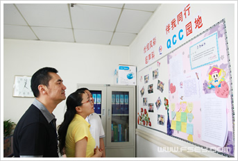 院领导先视察了我们的QCC园地,我们QCC园地的口号“优视风采,伴我同行”。园地中设有圈员风采、辅导员寄语、圈长感言,圈员心声,示范圈展示几个栏目。院领导对我们的QCC园地给予了充分肯定,是营造圈内氛围的良好体现。接着李院长详细询问了优视圈活动的主题,改善成效,及具体活动情况,当得知“住院病人B超报告送达率”目前取得了由每周的差错件数7.76份减少到4.08份,改善幅度为57﹪,成效显著。李院长认为,主题既切合我们的实际工作需要,也为临床医生对病人进行及早诊治提供了一个良好的时间优势,是一个密切结合临床,以病人为中心,辅助科室与临床科室双赢的一个很好的举措。刘院助认为这个活动主题实施成功后,可以在辅助科室内进行推广运用。