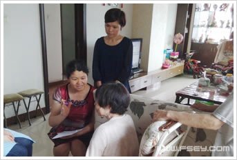 了解到欧婆婆近段时间有便秘情况,志愿者向欧婆婆说明了便秘对心功能差的人群的危害和保持大便通畅的重要性,对饮食、活动等方面对婆婆和家属做了详细的宣教,并教会欧婆婆如何正确的按摩腹部,促进肠蠕动的,针对她的疾病也对大便时采取的体位做了具体的指导。这些方法得到了欧婆婆及家属的赞扬,她们说:“你们今天带来的关心,比拿些东西更让我们开心,太感谢你们了。”
