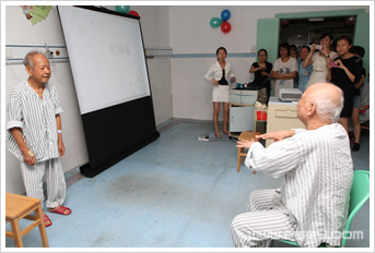 经过三个星期的精心准备,志愿者们为患者准备了精致的手工礼品和精彩的节目,节目共分成5个环节:开场舞《High歌》、情景剧《家有高血压》及知识有奖问答、正确使用血压计、游戏“你划我猜”、大合唱《朋友》。