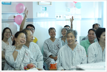 胡主任的讲解结束后,主持人设置了三个互动有奖问答环节,听众们积极参加,赢得了丰富的奖品。接着志愿者和患者共同完成了你划我猜的游戏,听歌猜歌名的游戏环节也得到患者们的积极参与,现场气氛欢快轻松。有几个病人都说,这样的活动真好,让她们有得玩有的吃还学到了一些跟自己疾病有关的知识,让她们住院期间开心很多。