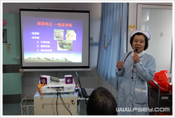 冬天快到了,繁重的衣服给很多有糖尿病足的患者带来不便,患者对于糖尿病足的护理更是增加了困难,内分泌、消化内科护长蔡春媚亲自讲解PPT《冬季糖尿病足的护理》,详细的讲解,减轻了患者对疾病的担忧。志愿者们邀请了患者参加游戏《萝卜蹲》,一面缓解患者住院的压抑心情,一面鼓励患者积极面对疾病,战胜疾病。最后,活动以一首合唱《相亲相爱》结束。