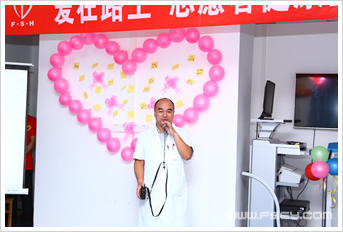 本站讯:8月13日下午,4号楼5楼康复治疗中心格外热闹,由团委主办,遵义医学院承办的“爱,因为在心中”主题的脑梗死宣教活动顺利完成,这也寓意着2015年“爱在路上”志愿者健康宣教活动正式拉开帷幕,活动得到神经内科、康复科全体医护人员的大力支持,疼痛科敖兴亮主任、护理部温春良护长、科教科黄晓瑜也亲临现场为志愿者们加油。