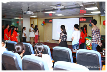 晚上7:00,活动在实习同学王侃青与宁敏珍的主持下正式拉开序幕。“咚咚咚---咚咚---”,我们配着欢快的节奏,来了个“击鼓传花”的开场热身游戏。绣花球的每一次跳动,大伙们的小心脏跟着加速跳动,那股欣喜劲儿根本停不下来。