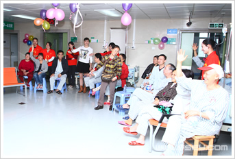 接着,由患者们自由两两组队玩起了你比我猜游戏。共有三组患者参加了游戏,叔叔阿姨们对物品的比划十分形象,又有趣。游戏时间到了,患者们还意犹未尽。活动最后志愿者和患者们携手唱起了《红日》,也唱出了大家的心声。“命运就算颠沛流离,命运就算曲折离奇,命运就算恐吓着你做人没趣味,别流泪心酸,更不应舍弃,我愿能一生永远陪伴你……”
