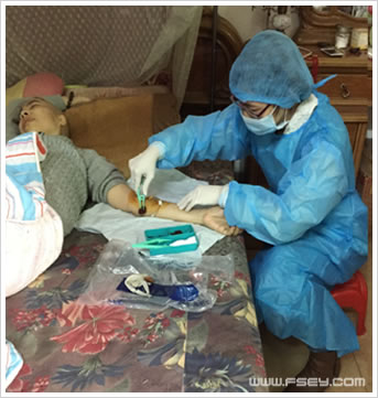 这次上门,护理组长李少芳通过与谭阿姨及其家属的沟通,大致了解了谭阿姨的情况,随后为谭阿姨护理体查,然后根据她的现状给予了相应的就医指导及相关的饮食宣教。接着,张洁怡为谭阿姨更换了PICC管敷膜。志愿者们耐心地与谭阿姨聊天,并鼓励她,给予她重拾健康的信心。