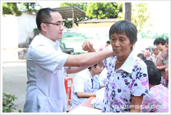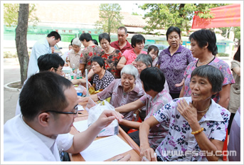 在义诊过程中,医护人员发挥青年人积极性,主动热情为老人们测血糖、测血压、诊断常见疾病、提供专业的健康意见、发放相应的药物。医生们发现,老年人的白内障、青光眼等眼疾也很普遍,有些已经视线模糊到几乎失明的状态,却没有到医院接受治疗,很多老年人有严重的高血压,但由于长期没有接受专业的诊断,一直没有服用降压药物,非常危险。其中一位老阿婆,今年82岁,曾旭灿医生帮她测血压240/110mmhg后,马上要求其静坐10分钟,待再次测量时,血压仍是这么高,老人表示没有不舒服感觉,要求回家,曾医生联合村里的干部,将老人劝说静坐后,立即给予降压药服用,半小时后,老人的血压降至170/96mmhg,曾医生还请村里的干部将其送回家,老人再三感谢,表示感谢曾医生这么细心的照顾她,现在的年轻人真是好啊。