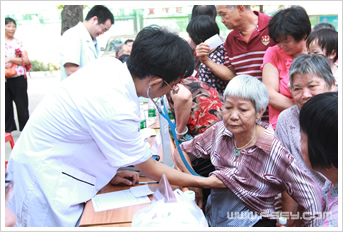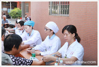 此次活动我院派出由内科、外科、急诊科、体检中心及药剂科等9名团员青年医务人员,在短短两个半小时里,共接诊了180多名老人,免费测血压、发放治疗高血压、眼疾、感冒等药品。