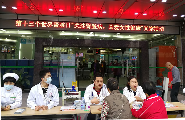 2018年3月8日是第13个世界肾脏病日,也是国际妇女节,上午8:30肾病风湿科组织医护人员在我院2号楼门前举办了“关注肾脏病,关爱女性健康”大型义诊活动。虽然气温突然下降,室外温度只有10度左右,风雨交加,但也阻挡不了医护人员义诊的热情,整个上午接待了140名巿民。