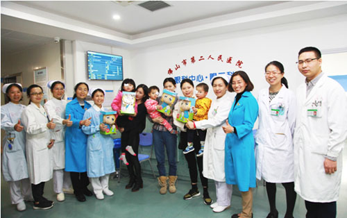 2017年12月28日,佛山市红十字会博爱医院学校校长方桦、副校长李广秀和市二医院护理部主任路海云、护理部副主任李燕如、信息宣传副科长梁文福等一行带着新年的礼物走入儿科、眼三科病房,来到病床边,给因病住院不能回学校上学的孩子送来新年的第一声问候。