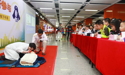目前,经常有乘客在搭乘地铁途中突发不适、意外晕厥等情况。据统计,仅 2016年2月1日-19日,广州地铁在车站、车厢共发生乘客晕倒事件共24件。对市民而言,在等待医院救护车的同时,掌握必要的急救方法必不可少。