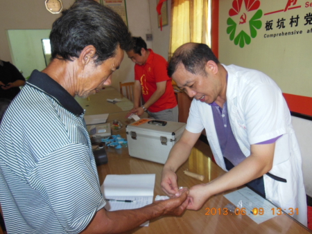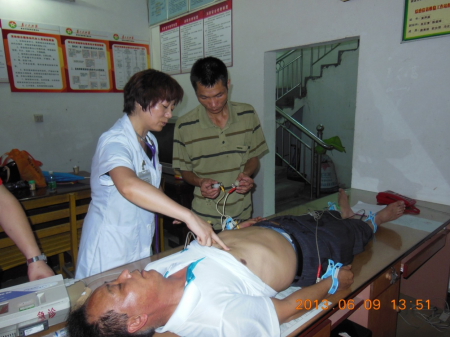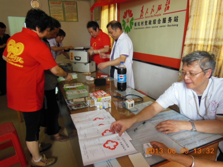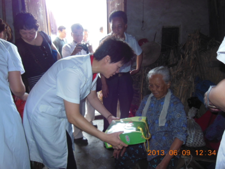 党员专家充分发挥了医疗骨干作用,用带来的心电图机、血糖仪、血压计等,为这些孤寡老人进行了全面的体检和疾病诊治。党员们冒着酷暑全力投入义诊公益活动中,通过全面的检查,发现不少孤寡老人患有高血压、糖尿病、关节炎等老年疾病,专家们拿出自己掏钱购买的药品,发给病人,并将门诊病历和治疗方案移交给村医,请村医代为继续观察治疗。党员李晓红主任,不但亲自培训当地村医的急救知识和复苏操作技能,还手把手教村医做心电图检查,村医高兴的称:受益非浅啊。