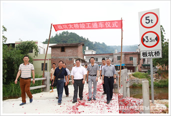 经过两个多月的紧张施工,大桥终于顺利竣工!这是我院扶贫开发,关注民生的又一成果,医院领导非常重视,党委书记、院长李蜀光亲自带队,党委副书记黄盛辉和全体帮扶责任人,会同清新区扶贫办、禾云镇扶贫办领导来到工地现场,参加了通车仪式,共同见证了板坑人民的盛事。