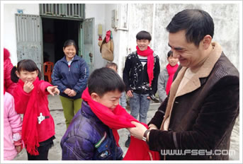 党委黄盛辉副书记为村里儿童系‘温暖牌’围巾