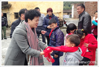 支部主委王晓宁为村里儿童系‘温暖牌’围巾