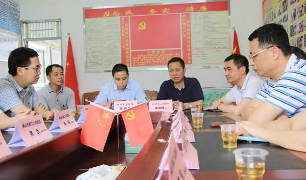 在古罗村委会,李书记一行在与千官镇委书记赖献辉、镇人大主席梁金华及村干部召开座谈会,驻村干部罗烁潘汇报了近期扶贫工作开展情况及古罗村被纳入全省2277条新农村示范村建设之一规划及下一步的计划。