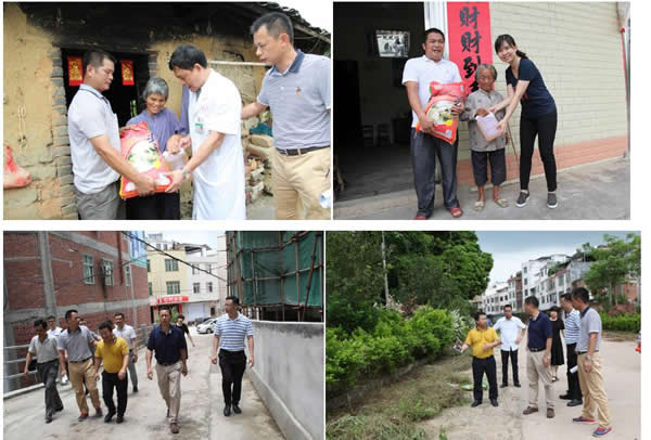 七一前夕,2017年6月20日上午,我院党委书记、院长李逸群、党委副书记黄盛辉、纪委书记潘思东、副院长张武,部分职能科负责人及各科专家等一行17人,驱车三小时,到扶贫双到对口帮扶村郁南县千官镇古罗村开展迎“七一”大型义诊活动,为有劳动力贫困户发放生产资料,深入行动不便的贫困户家中探访了解他们的生活。同时,还和镇、村两委共同商议扶贫工作,视察精准扶贫项目,有序推进精准扶贫工作。