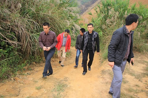 党委副书记黄盛辉在驻村干部的陪同下和千官镇人大主席梁金华,副镇长陈家鈳等一行人沿着蜿蜒的山路考察了古罗村安全饮水工程以及鹌鹑蛋养殖基地工程。
