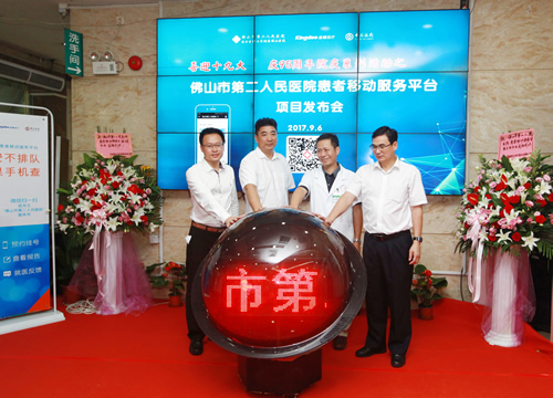 2017年9月6日上午,佛山市第二人民医院携手金蝶医疗、中国银行佛山分行联合在院内举行了“迎十九大 庆95周年院庆——佛山市第二人民医院患者移动服务平台项目发布会”,宣布患者移动服务平台正式上线。智慧医疗创新提效,将为市二医院医疗服务品质的提升插上翅膀,大大地改善患者的就医体验。