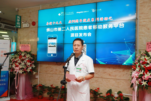 佛山市第二人民医院院长李逸群表示,为响应党中央国务院“互联网+医疗”的方针,落实进一步改善医疗服务行动计划,更好的满足人民群众的就医需求,在上级领导的正确领导下,我院通过跟金蝶医疗公司和中国银行的精诚合作,患者移动服务平台今天正式上线,我院全院职工也将大胆创新,不忘初心,不断努力积极推进“互联网+”健康工程,使广大人民群众切实感受到医疗改革的成就。