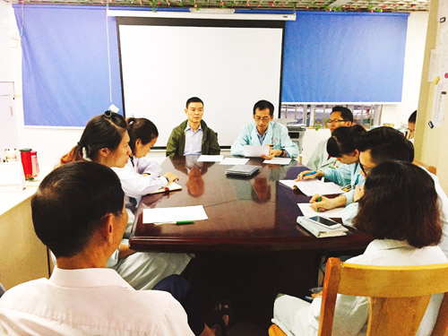 在会议的最后讨论阶段,副院长兼纪委书记潘思东同志对支部这段时间的工作谈了自己的感想并提出所有党员,特别是年轻的党员,要细读十九大的每一字每一句,认真学习其中的各项内容。潘思东同志强调,党建工作是支部工作十分重要的一环,希望我们基层党支部要继续保持这种积极认真的工作态度,大家齐心协力,结合实际工作,把支部发展的更好,为建设医院的美好未来贡献力量!