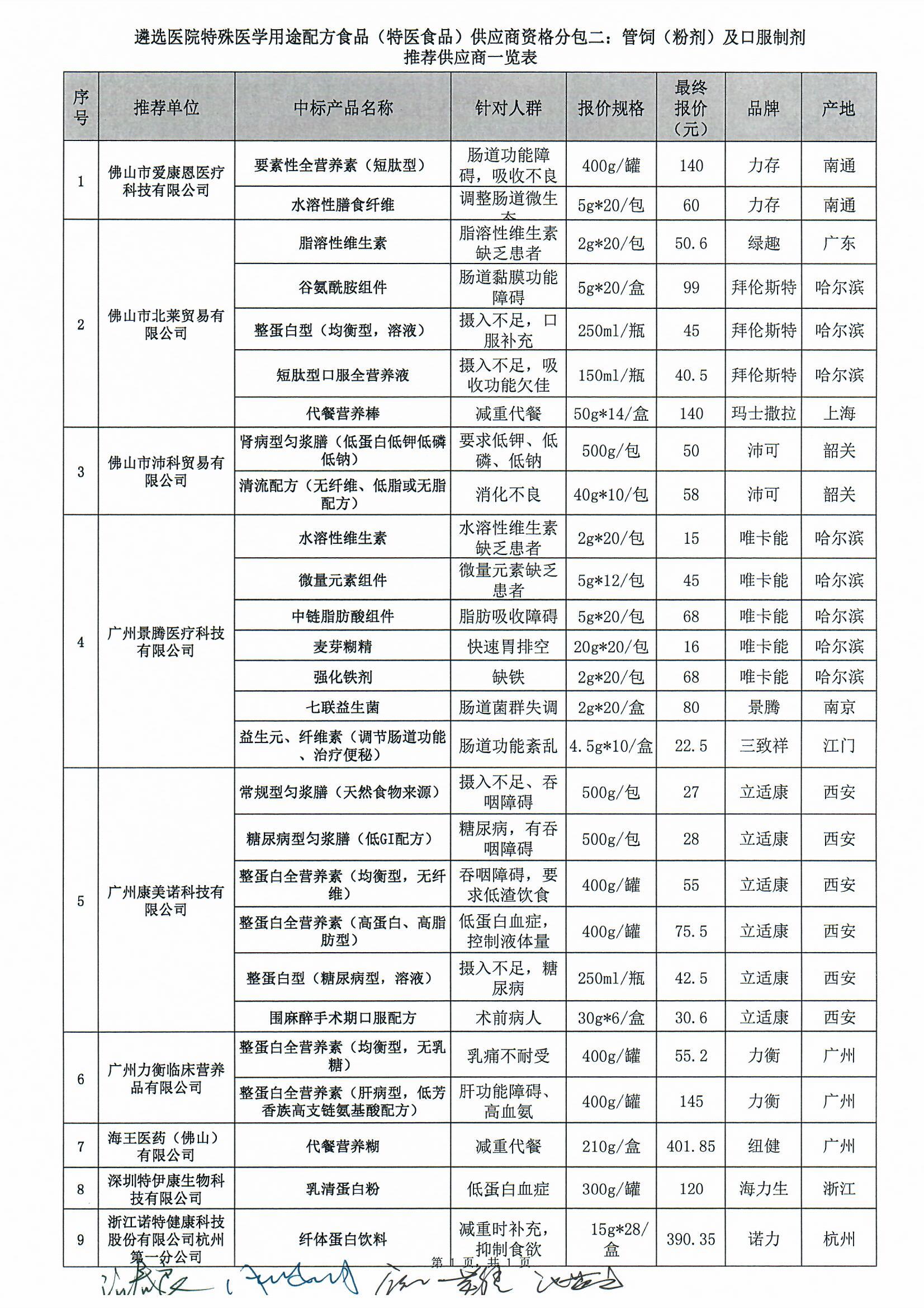 【中标信息】遴选医院特殊医学用途配方食品(特医食品)供应商服务资格分包二:管饲(粉剂)及口服制剂中标公告