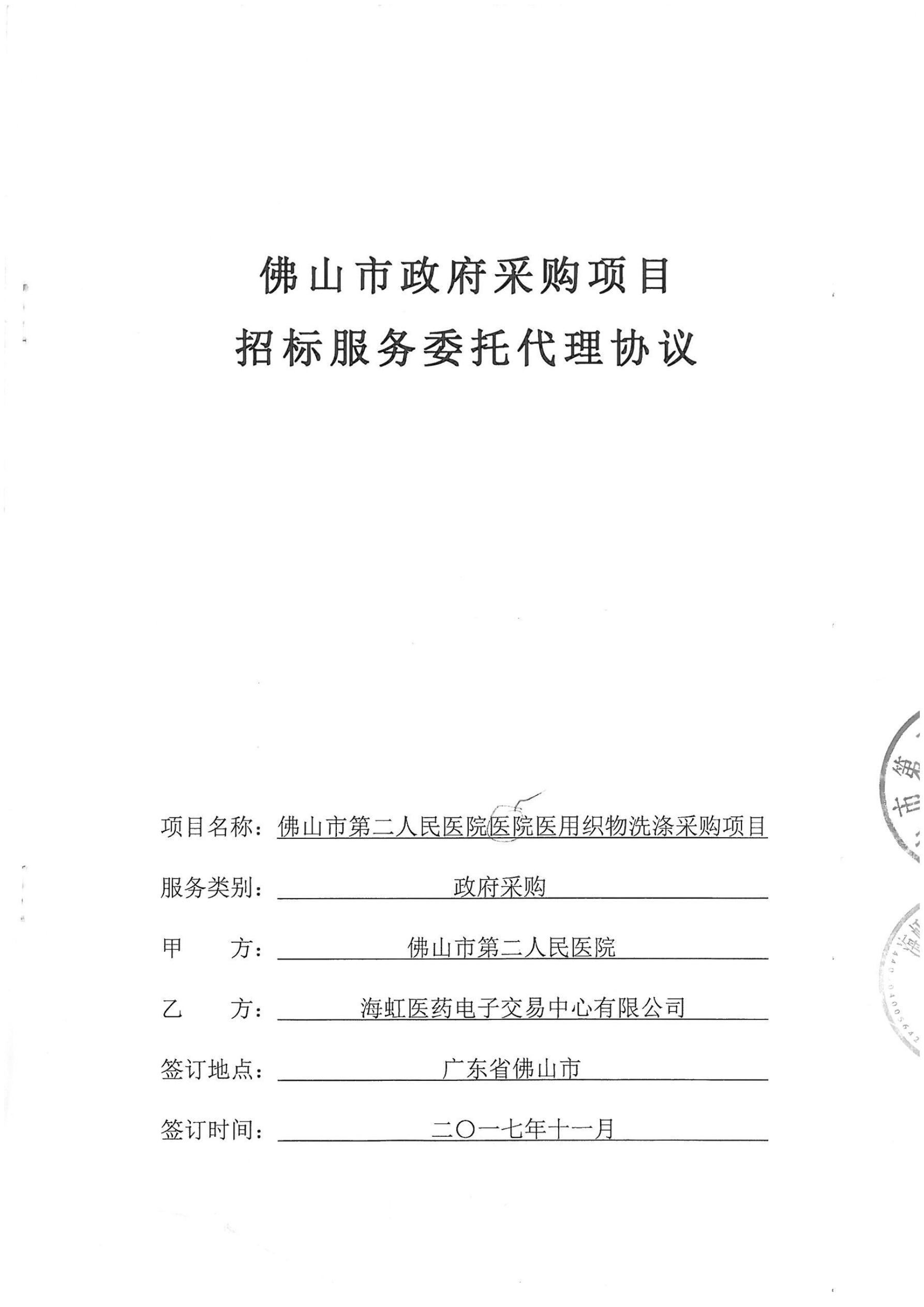 二、采购项目名称:佛山市第二人民医院医用织物洗涤采购项目